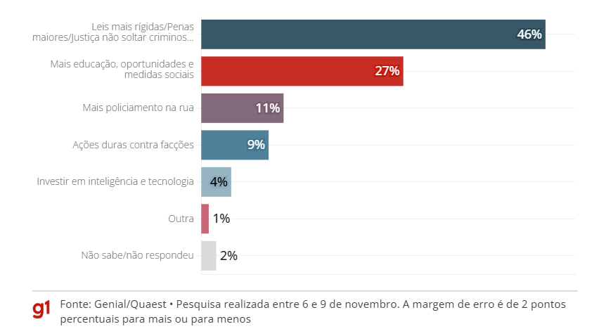 e se somos 32% defendendo outras estratégias, existe luz no fim do túneo — ainda que, vista do lugar que estamos, essa luz pareça um único vagalume. mais educação, oportunidades e medidas sociais certamente fazem a diferença a favor da segurança.